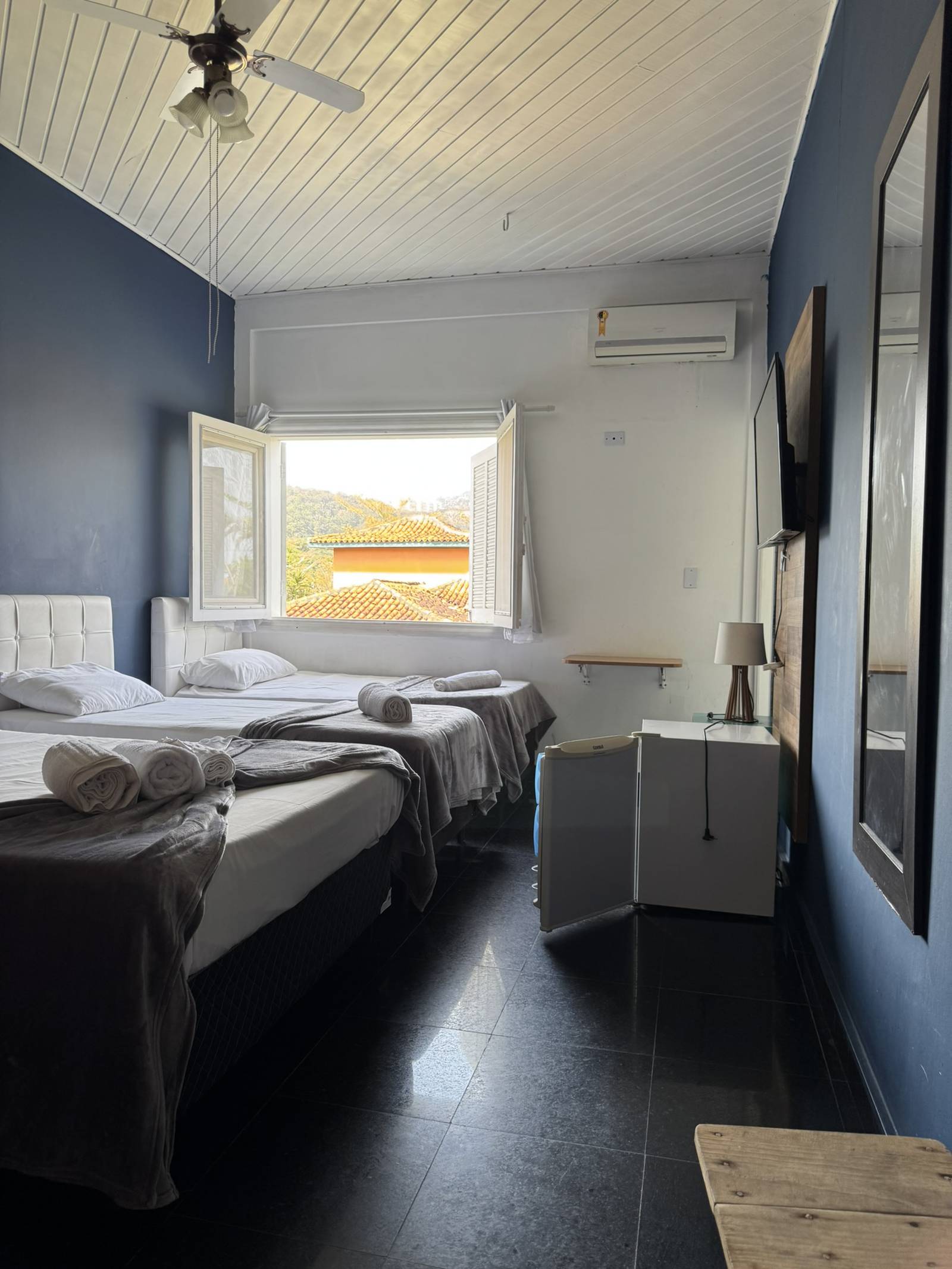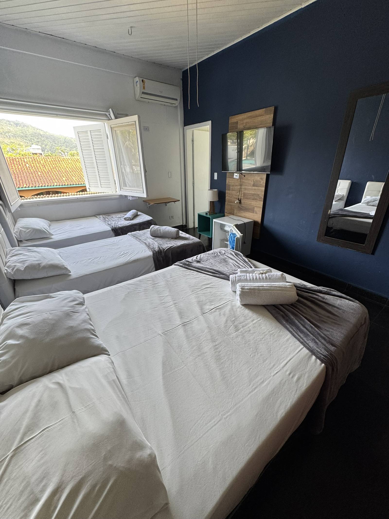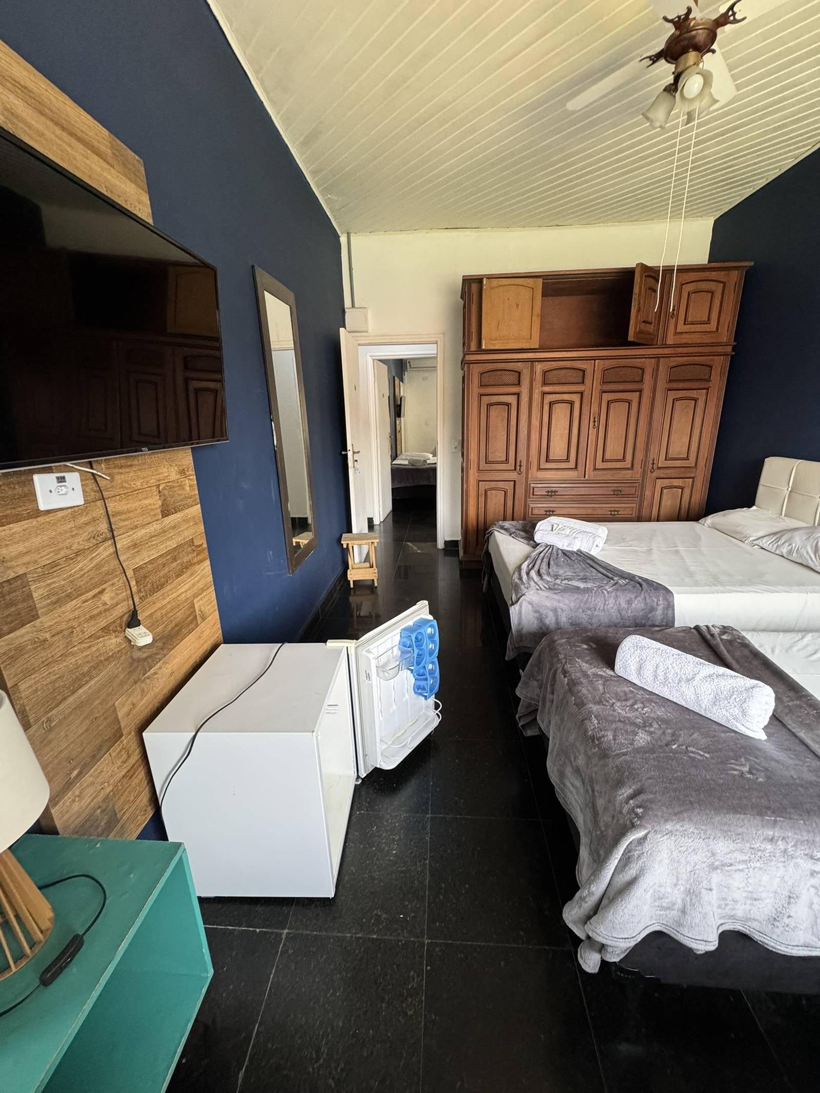O quarto Home Superior Quádruplo hospeda até 4 pessoas, sendo o Quarto 4 do nosso hotel, com uma camas casal + duas camas solteiro, com conforto e com as seguintes comodidades: