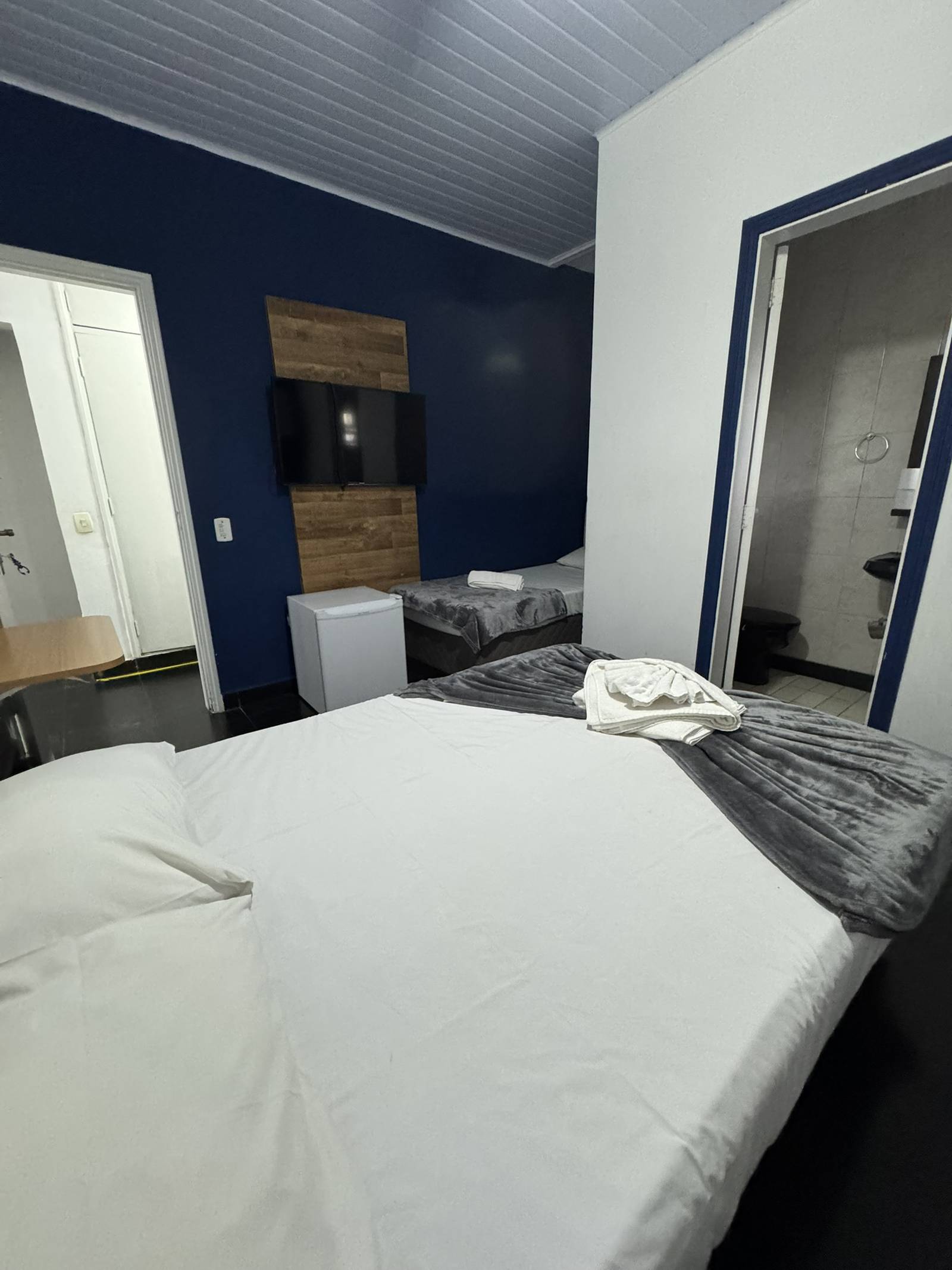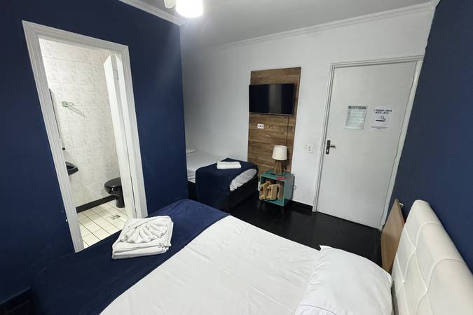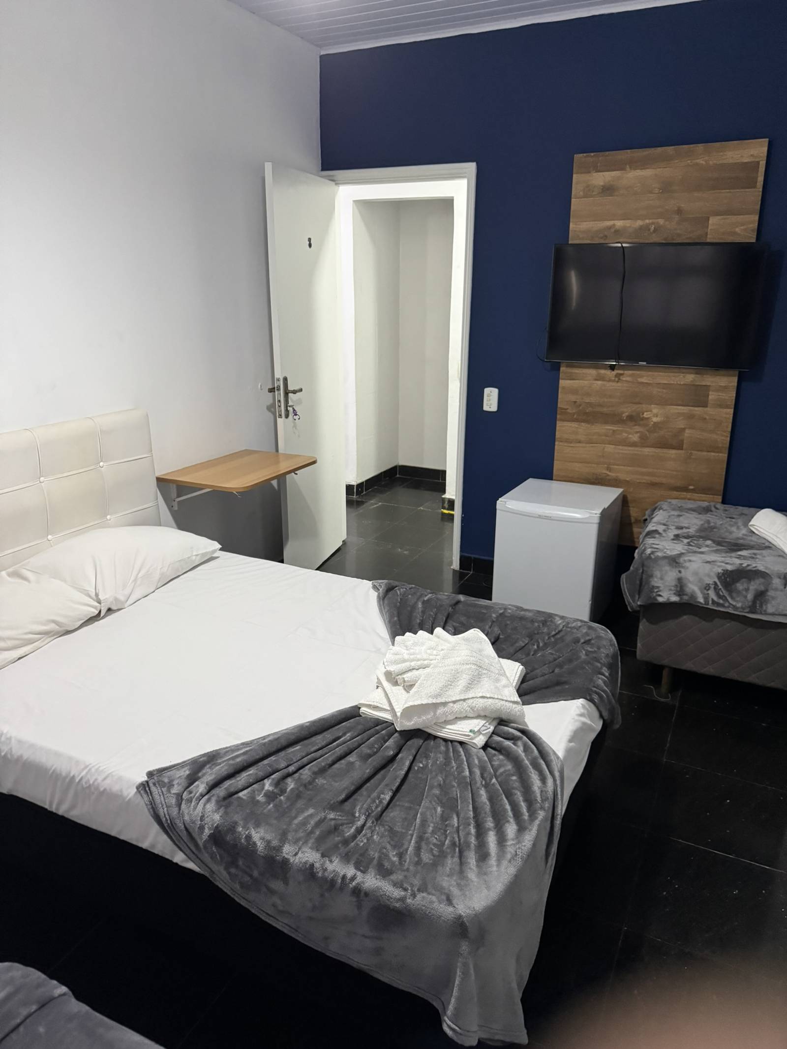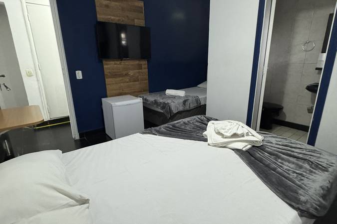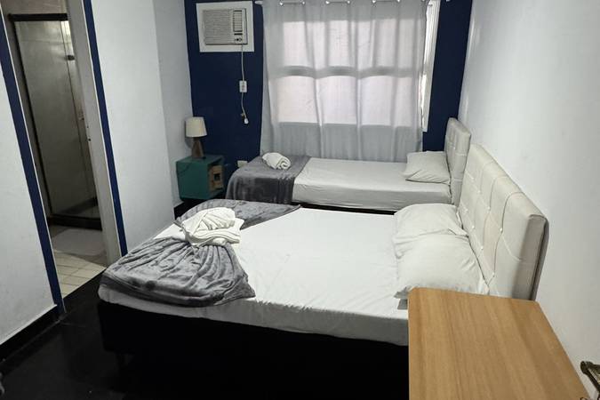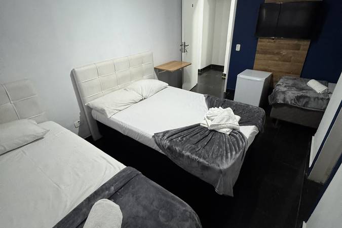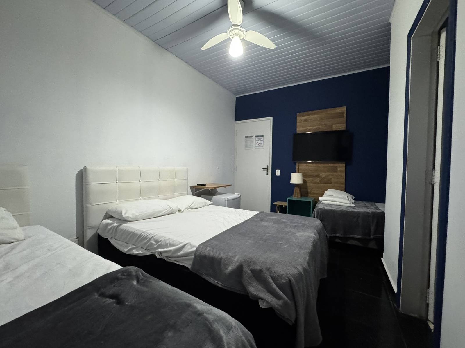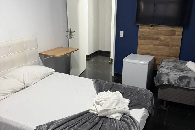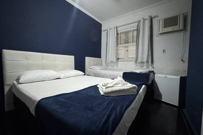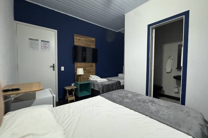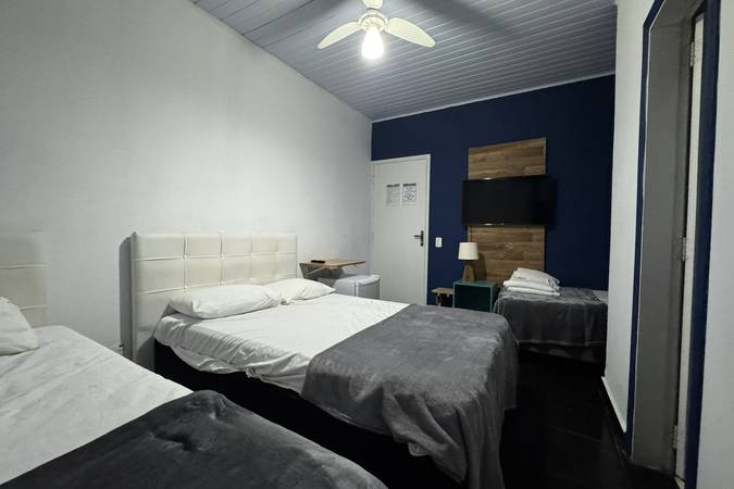 As duas unidades da categoria Home Térreo Quádruplo hospedam até 4 pessoas, sendo o Quarto 3 com duas camas casal, e o Quarto 1 com uma cama casal + duas camas solteiro, ambos confortáveis e com as seguintes comodidades: