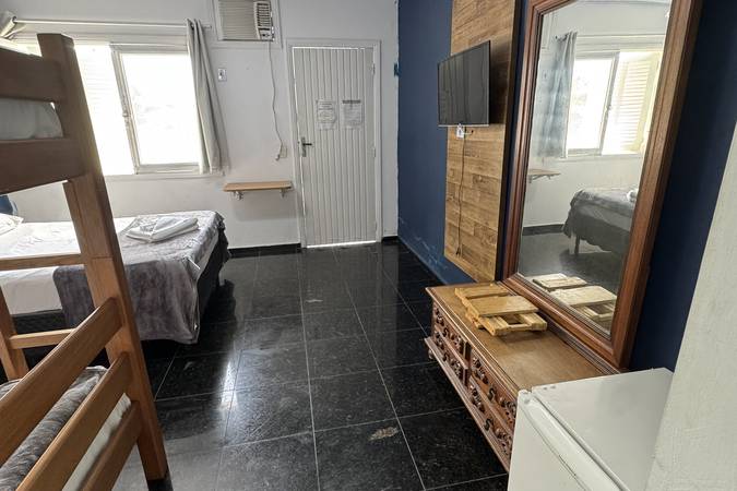 Nossa acomodação da categoria Externa Superior Quádruplo hospeda com conforto até 4 pessoas com uma cama casal e um beliche, além das seguintes comodidades: