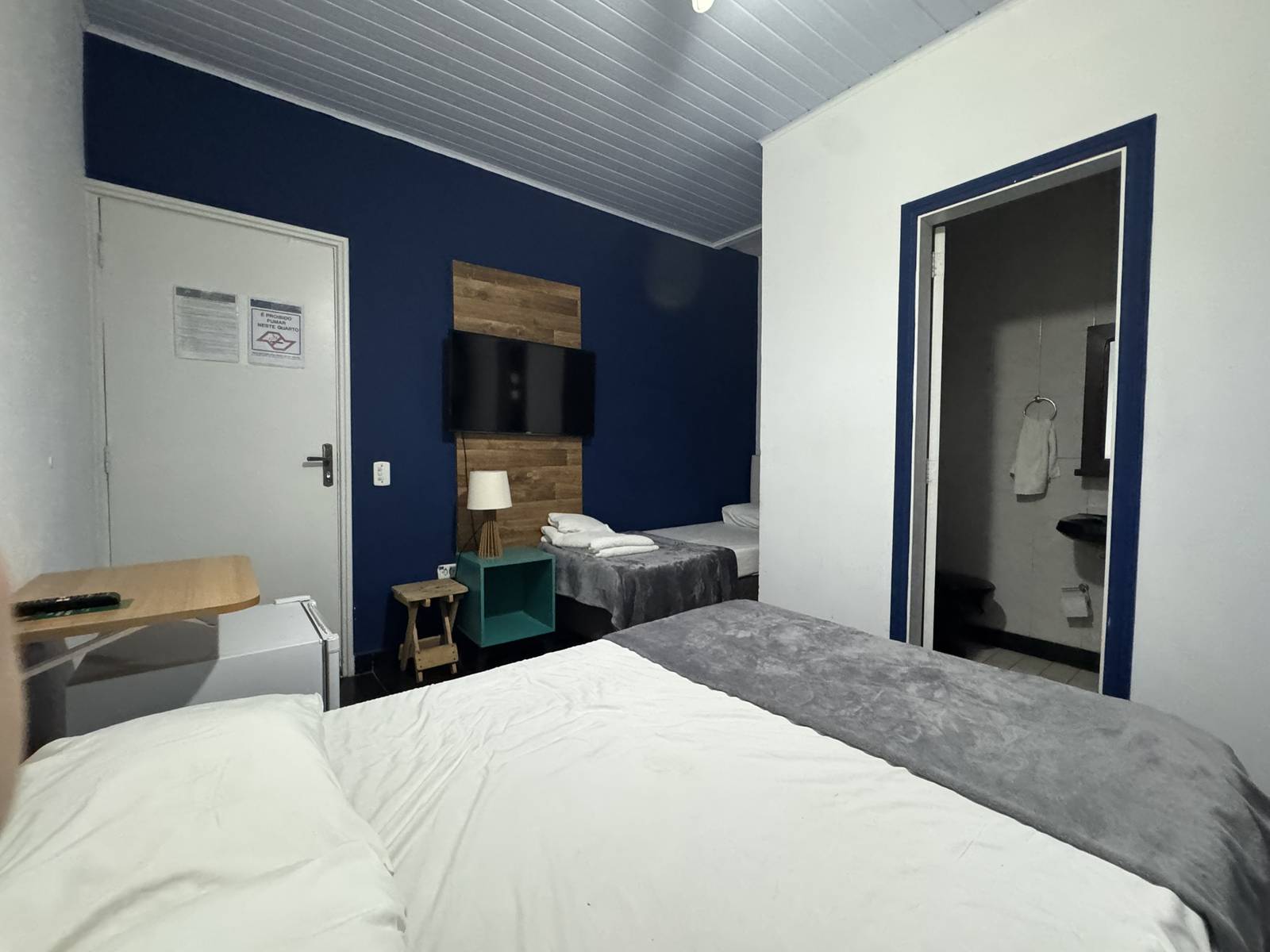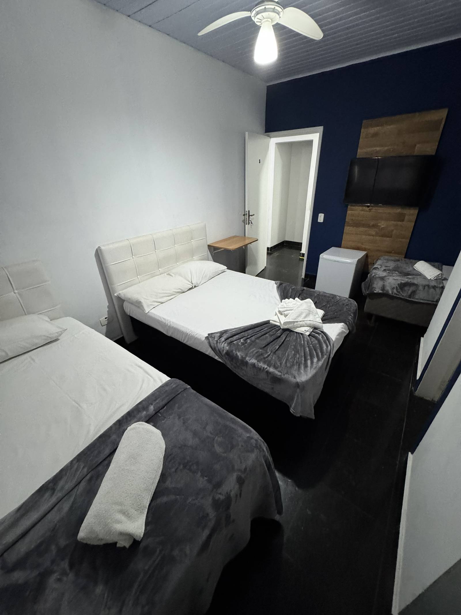 As duas unidades da categoria Home Térreo Quádruplo hospedam até 4 pessoas, sendo o Quarto 3 com duas camas casal, e o Quarto 1 com uma cama casal + duas camas solteiro, ambos confortáveis e com as seguintes comodidades: